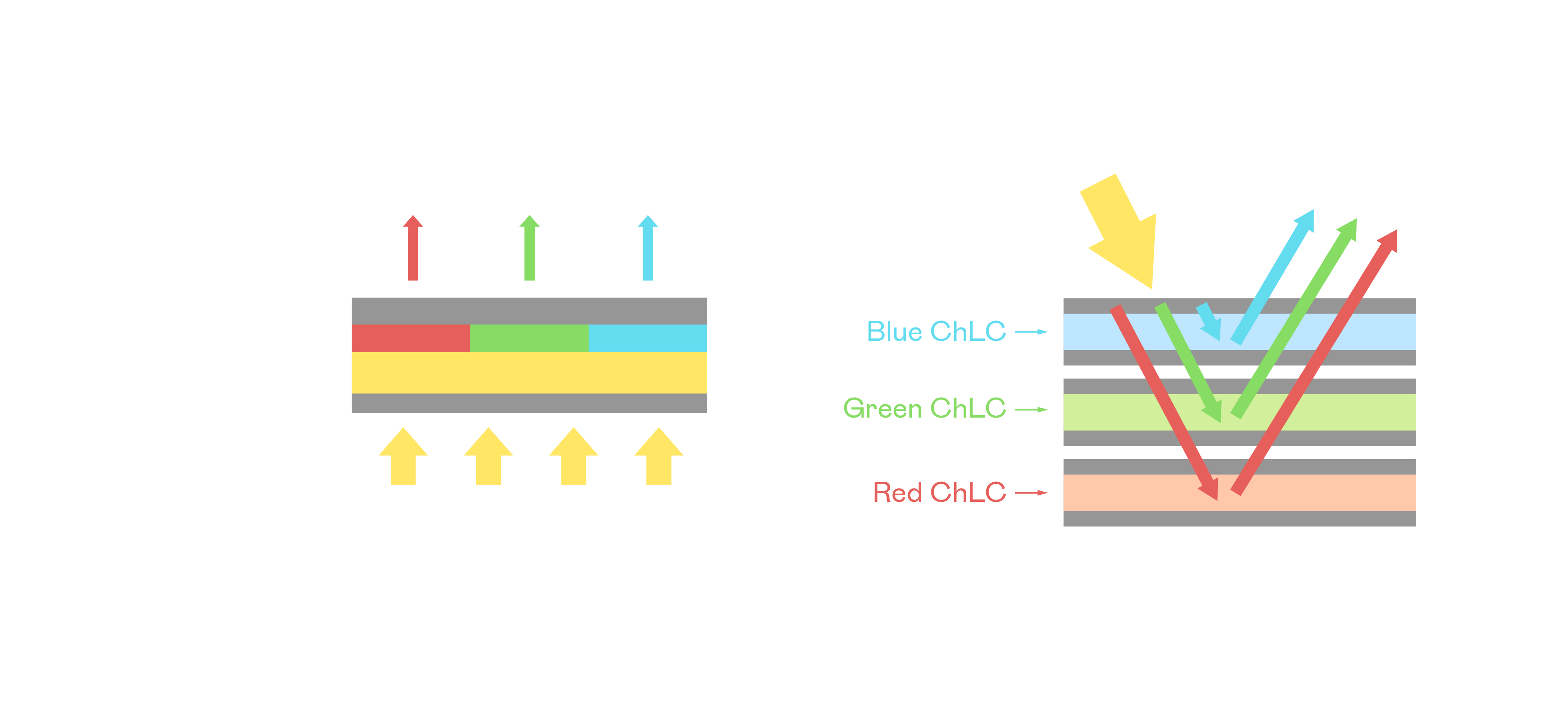 南宫集团胆固醇液晶显示器是由红、绿、蓝三层胆固醇液晶面板堆叠而成,并采用无彩色滤光片设计,减少环境光在反射过程中的损耗。